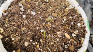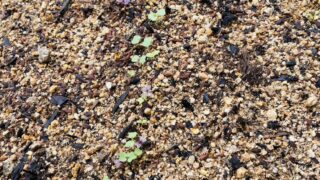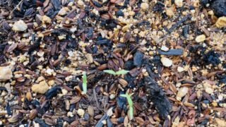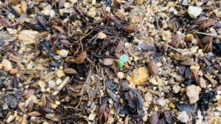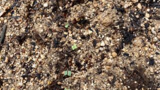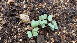 種を植えた場所的に、スイカの芽?が出ました。ちょっと自信がないので、しばらく様子を見ます。
