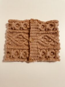 毛糸が足りずに長さ50㎝までしか模様が編めませんでした。