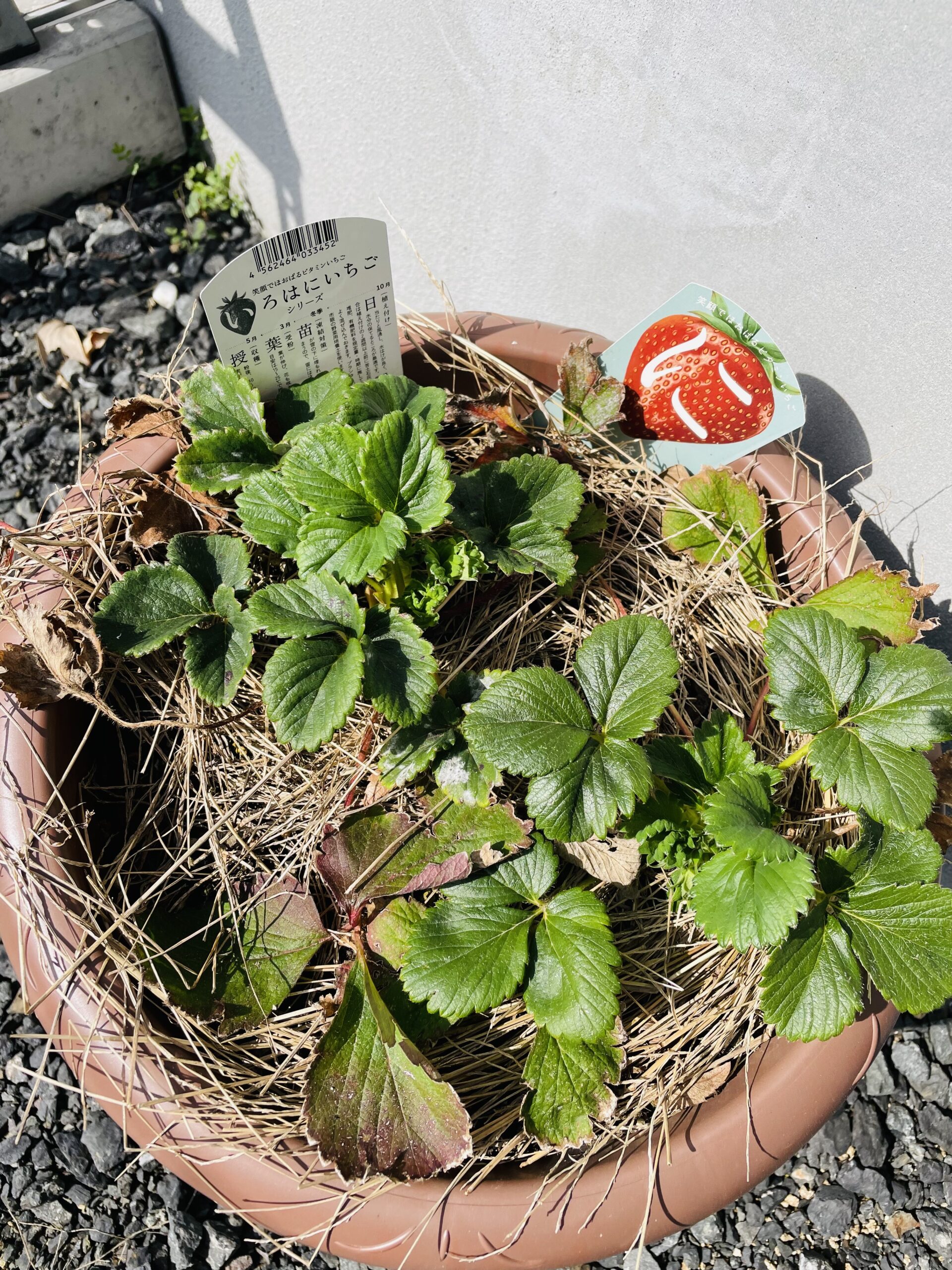 いちご(3か月後) ガーデン 2026.03.01 今冬は全国的に大雪でした。 雪国ですので、地元も結構積もりました。 3月に入り、梅が咲き始め、ようやく春がやってきました。 去年買ったイチゴの苗ですが、 厳しい冬を越えて、少し大きくなりました。 買った当初は、うどん粉病なのか、葉っぱに白い粉が付いていましたが どうやら治ったようですね。 5月ごろが収穫になるようです。 待ち遠しいです。