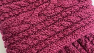 こちらは10年前に編んだ縄編みのマフラーです。当時狂ったように縄編みを編み続け、糸始末が面倒になり、輪っかに縫い合わせました。首に巻くと、外気を全く寄せつけずホッカホカです。ワインレッドが落ち着いていて、冬コートに良いアクセントになりお気に...